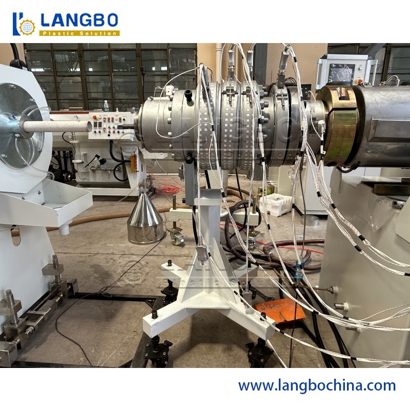 Πρώτες ύλες + πρόσθετο → Ανάμειξη → Μεταφορά υλικού → Αναγκαστική τροφοδοσία → Κωνικός εξωθητήρας διπλού κοχλία → Καλούπι εξώθησης → Μονάδα ελέγχου διαμέτρου → Κουτί διαμόρφωσης κενού ψεκασμού → Δεξαμενή νερού ψύξης τύπου ψεκασμού/βύθισης → Μηχανή σήμανσης → τρακτέρ ερπυστριοφόρου ερπυστριοφόρου → Pipepeion Cutter → συσκευασία