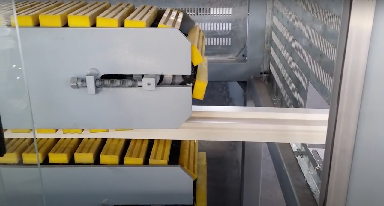 Η ροή της διαδικασίας αυτής της γραμμής αποτελείται από σκόνη PVC + πρόσθετα ̇ ανάμειξη ̇ τροφοδοτικό υλικού ̇ εκχύλιση με δύο βίδες ̇ καλούπι και βαθμονωτή ̇ βάθρο σχηματισμού κενού ̇ μηχανή ανάσυρσης ̇ μηχανή κοπής ̇ ράφι εκφόρτωσης.