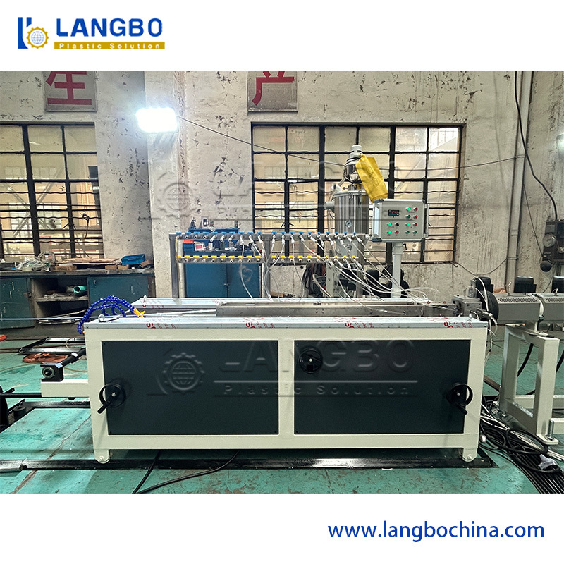 Η ροή εργασίας παραγωγής:ΠΟΥΡΙΚΑ + πρόσθετο → ανάμειξη → τροφοδότης υλικού → διπλή βίδα → μούχλα → πίνακας βαθμονόμησης → μηχανή αποσύνδεσης → διαδικασία στρώσης → μηχανή κοπής → ράφι εκφόρτωσης