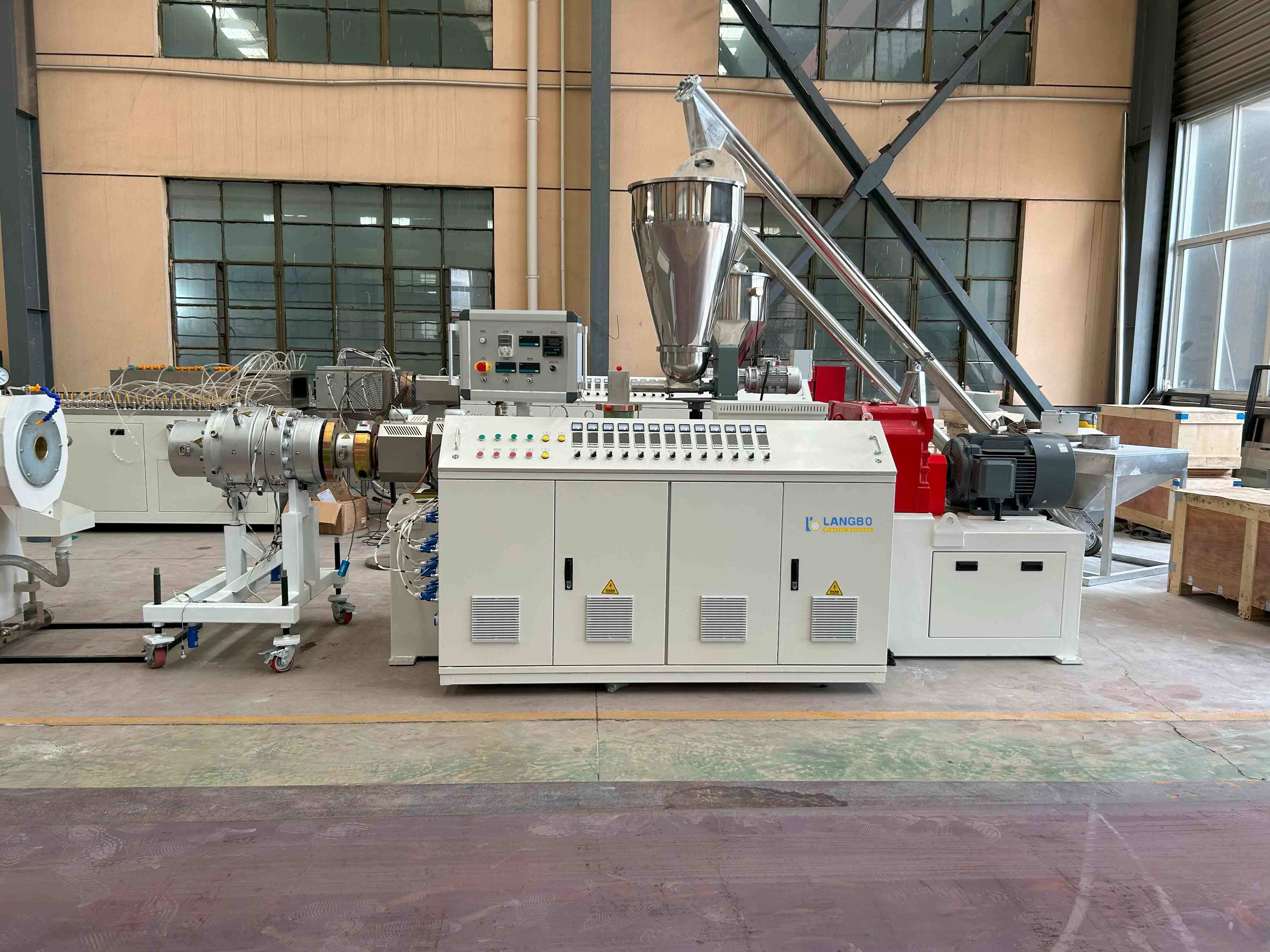 - Η μονή/διπλή βίδα εξτρεδέρ θερμαίνει και λιώνει το μείγμα PVC, σπρώχνοντάς το μέσα από μια κεφαλή πετσέτας για να σχηματίσει ένα συνεχές σωλήνα.