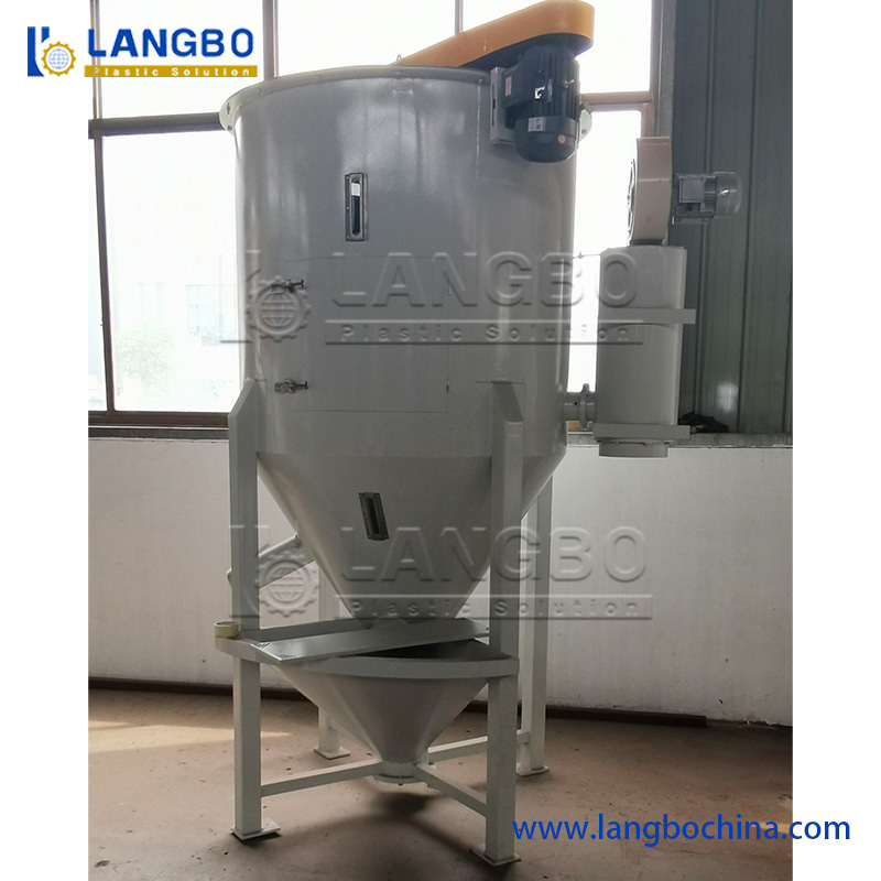 Μηχανή κάθετης ανάμειξης και ξήρανσης υψηλής απόδοσης που έχει σχεδιαστεί για πλαστικά πελέτα HDPE και LDPE και υλικά σωματιδίων, εξασφαλίζοντας ομοιόμορφα αποτελέσματα ανάμειξης και σταθερή ξήρανση.