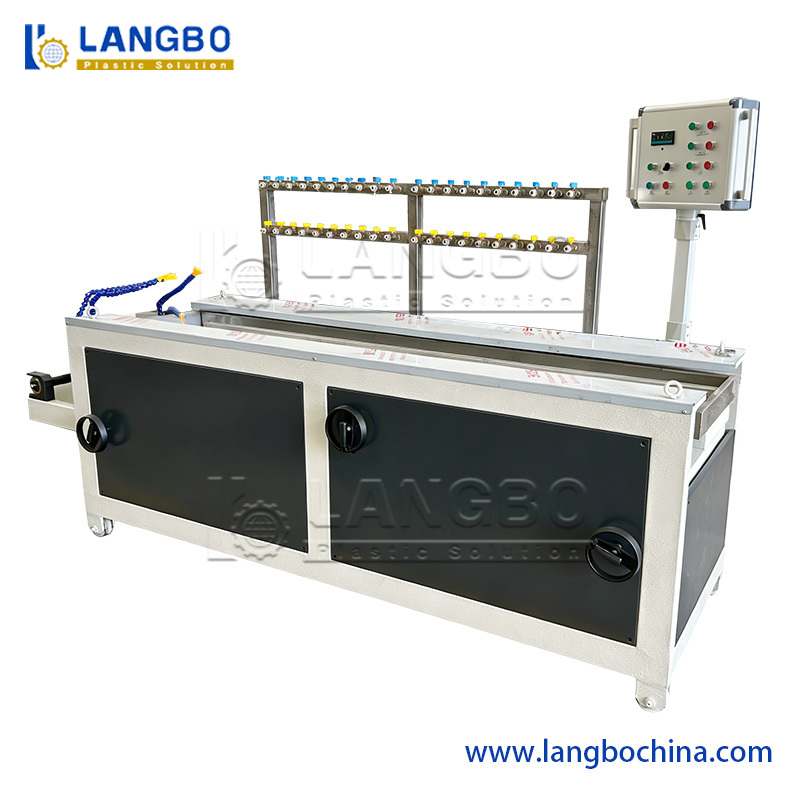 In the middel west countries, the LED light market is vast and huge demand. For the LED light, the cover and bottom profile is made by PC material. The two colors PC LED tube needs co-extrusion crafts. For this line, it equips one 65/28 22kw extruder and another 50/28 11kw extruder. The co-extrusion ensures the profile with two color. We adopt 2500mm long and 600mm width calibration table. For the haul-off machine, it is two belt haul-off method.It ensures the cover and bottom LED light tube fix each other greatly. At the end, we have cutter unit and stacker for lying the finished PC profile.