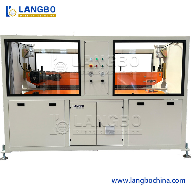 The pipe cutter machine cuts PE pipe to the desired length programed into the HMI.