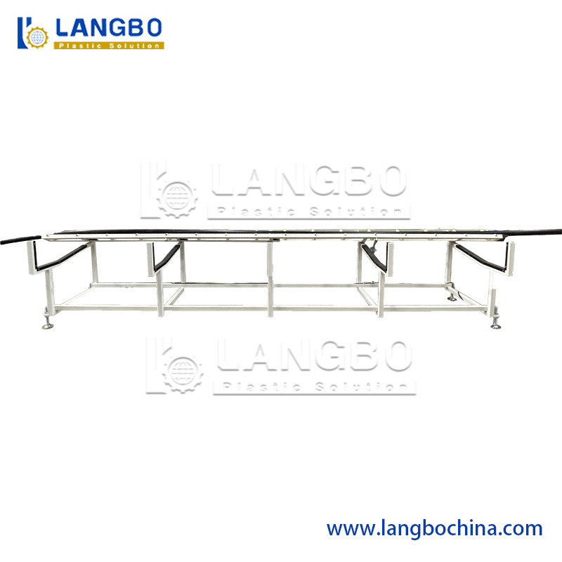 The vacuum and cooling tank cool and dry extruded pipe to help maintain ovality and pipe uniformity.
